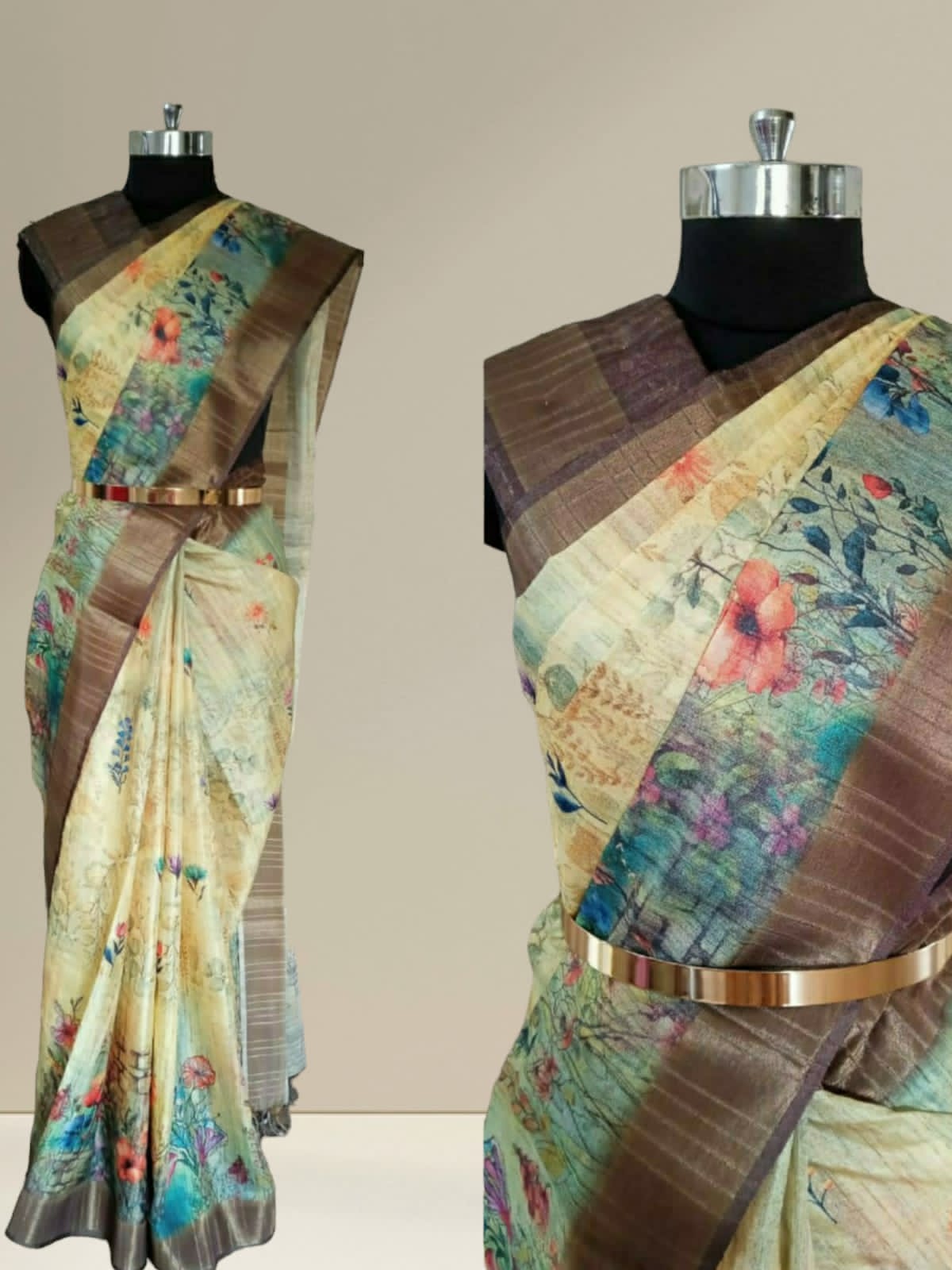 Digital floral Printed Semi tussar Sarees
